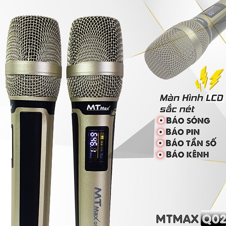 Micro không dây đa năng MTMAX Q02 - Micro không dây giá tốt, sử dụng cho mọi loại thiết bị âm thanh - Micro dành cho loa kéo, loa bluetooth, amply - Màn hình Led hiển thị thông số - Âm thanh cực hay, giá cực rẻ