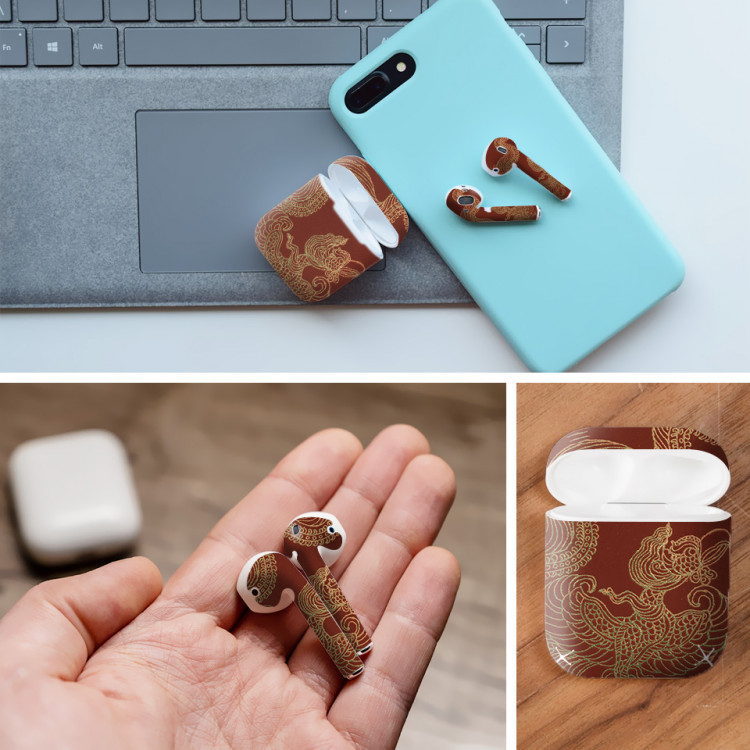 Miếng dán skin chống bẩn cho tai nghe AirPods in hình Rồng bay Phượng múa - lsm042 (bản không dây 1 và 2)