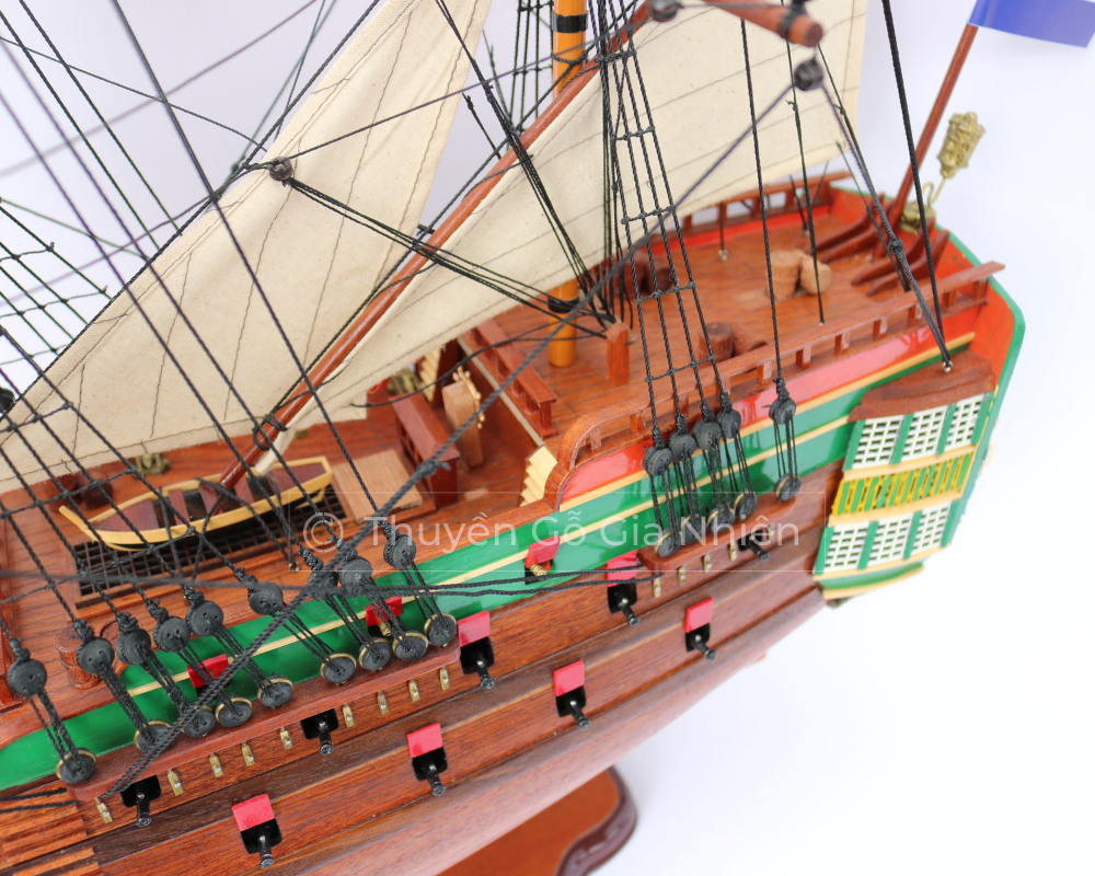 | Chất liệu | Được làm hoàn toàn từ 100% gỗ tự nhiên, tất cả chi tiết đều được hoàn thiện và sơn màu kỹ lưỡng tương tự tàu thật. |