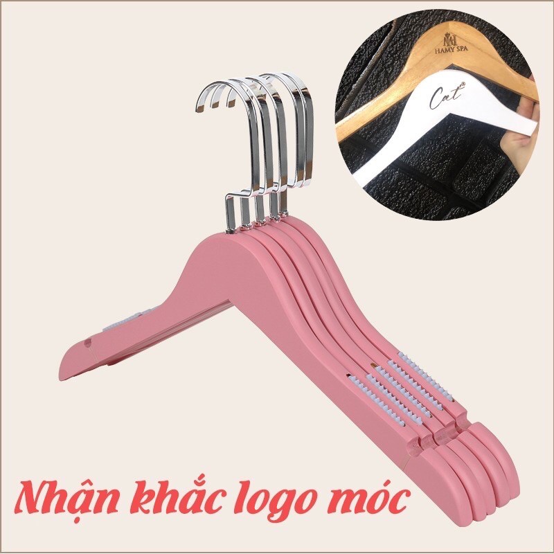 Giới thiệu móc treo quần áo-mắc gỗ màu hồng có thiết kế đệm vai-kích thước 39cm-chuyên dùng cho shop-gia đình,...