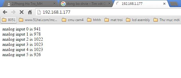 Bước 5: Bật 1 trình duyệt Web nên. Trên thanh địa chỉ nhập địa chỉ IP vào khi đó trạng thái của các cổng trên Kit được hiển thị trên trình duyệt web.
