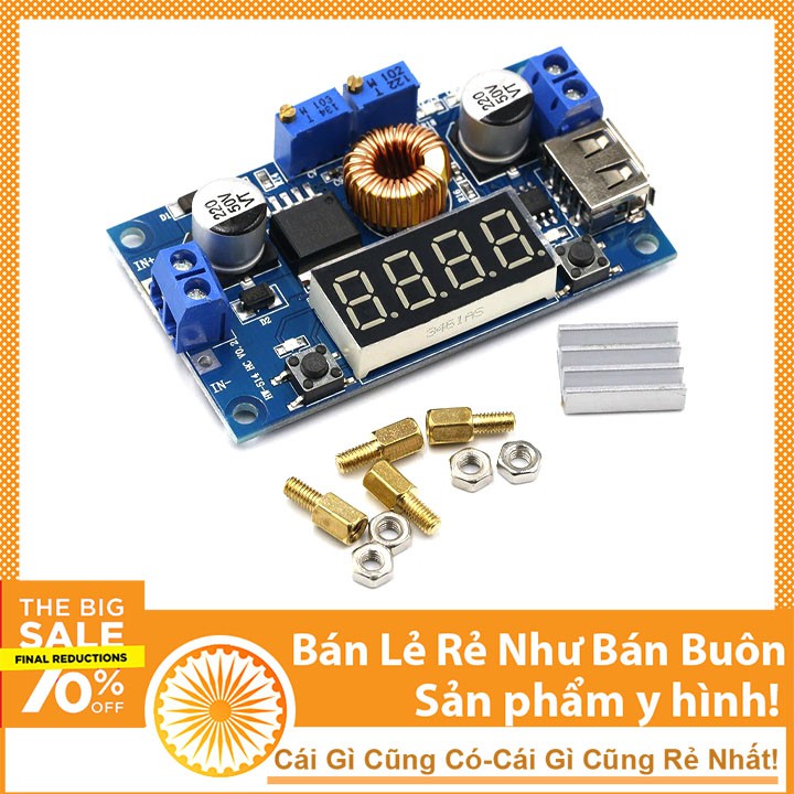 - Module hạ áp 5A có hiển thị có chức năng điều chỉnh điện áp ra theo yêu cầu sử dụng của người dùng trong dải điện áp từ 1.25 đến 32 V với dòng Max 5A. Trên module có các led báo và Led hiển thị thông số của điện áp in/out. Module có kích thước nhỏ gọn nên có thể tích hợp dễ dàng trên các robot, các sản phẩm yêu cầu nhỏ gọn...