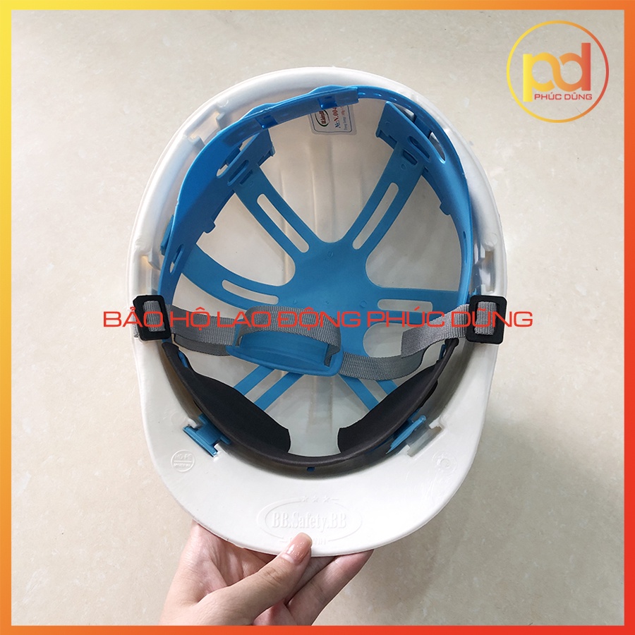 -Đai nón bảo hộ được làm bằng nhựa dẻo và sợi tổng hợp, ngoài ra còn có miếng lót bằng mút giúp tạo cảm giác êm hơn khi sử dụng, bảo vệ người mang 1 cách tối đa.