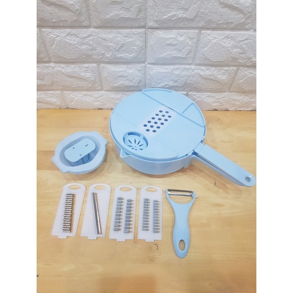 Với 11 chức năng: Thau, rổ, nghiền gừng tỏi, lược trứng, thái lát, bào sợi to nhỏ, bào khoanh.