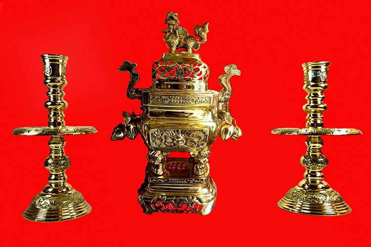 | Kích thước (Dài x Rộng x Cao) | Lư hương cao 61cm / Đôi chân nến cao 51cm |