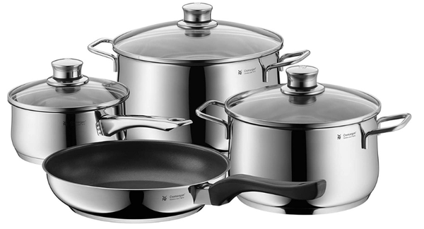 - Bộ nồi chảo inox WMF DIADEM PLUS 4PC Cookware Set thích hợp sử dụng trên mọi loại bếp, kể cả bếp từ, bếp hồng ngoại.