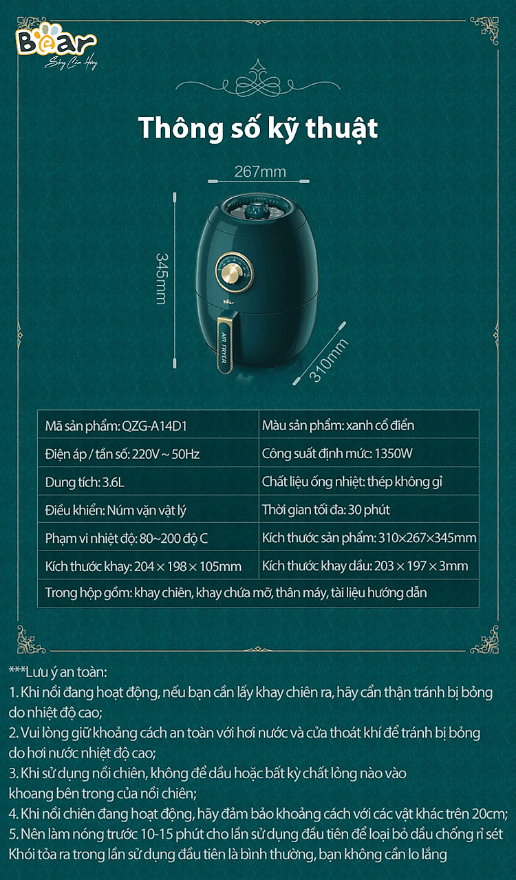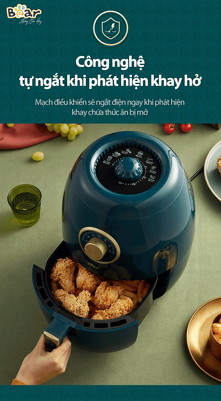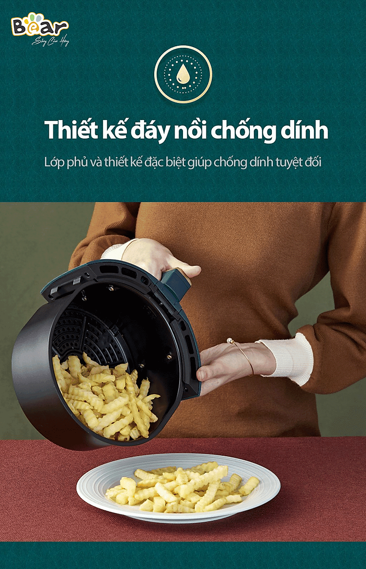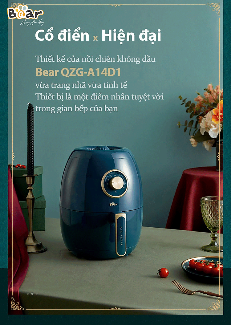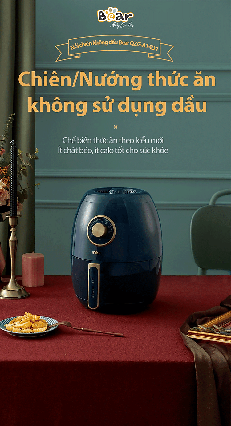 Nồi chiên không dầu Bear QZG-A14D1 với thiết kế sang trọng, được làm từ chất liệu thép không gỉ cao cấp kết hợp với công suất 1350W và dung tích 3.6 Lít là trợ thủ đắc lực cho căn bếp của bạn. Chỉ với một chiếc nồi chiên không dầu Bear QZG-A14D1 bạn có thể thỏa sức chế biến món chiên, nướng, an toàn cho cả gia đình.