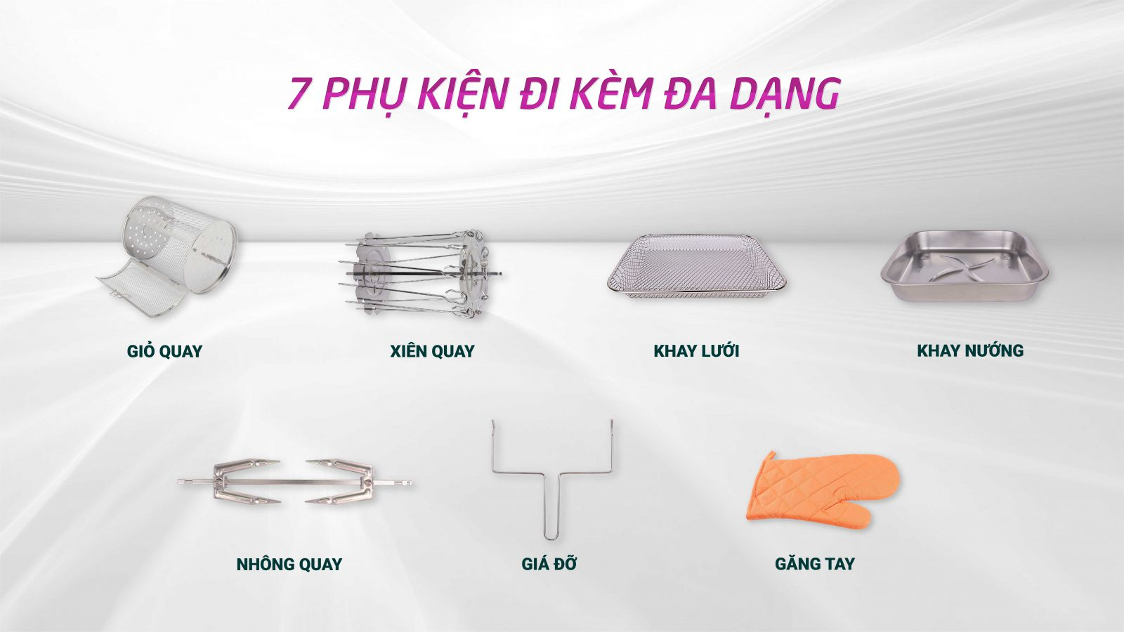Không chỉ vậy, sản phẩm còn được trang bị thêm 7 phụ kiện đi kèm, giúp người dùng có nhiều sự lựa chọn hơn để dễ dàng biến tấu vạn món ngon với những công thức đặc biệt.