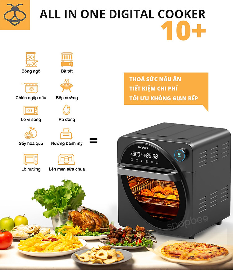 Thế kỉ 21 là thời thế của những nàng dâu hiện đại lên ngôi, họ mong muốn sở hữu các thiết bị nhà bếp công nghệ cao để hỗ trợ công việc bếp núc hiệu quả nhất thay cho các phương thức, dụng cụ nấu ăn truyền thống. Đặc biệt phải kể đến nồi chiên không dầu đa năng tích hợp nhiều chức năng như SNAPBEE QUEEN RF15, một trong những sản phẩm hoàn mỹ và đẳng cấp nhất của SNAPBEE. Với công nghệ chiên nướng thông minh, hiện đại, sở hữu nhiều tính năng vượt trội so với các dòng nồi chiên trên thị trường, QUEEN RF15 giảm tới 95% lượng chất béo nhưng vẫn giữ nguyên hương vị món ăn. Một chiếc nồi chiên không dầu Snapbee thay thế cho 10 thiết bị nhà bếp khác, giúp tiết kiệm chi phí và không gian nhà bếp của bạn.