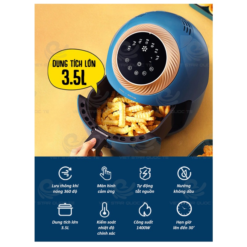 Giới thiệu [Mã ELHADEV giảm 4% đơn 300K] Nồi chiên không dầu Việt Star Quốc Tế, Dung tích 3.5L, Công suất 1400W Bảo hành 12 tháng