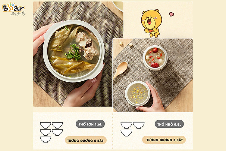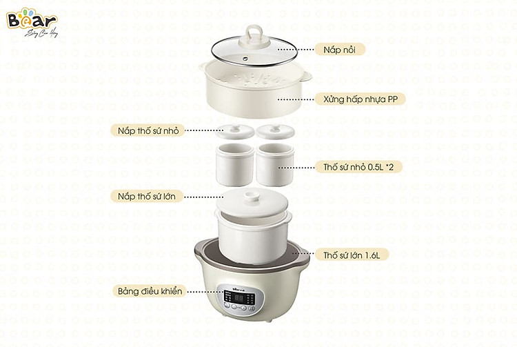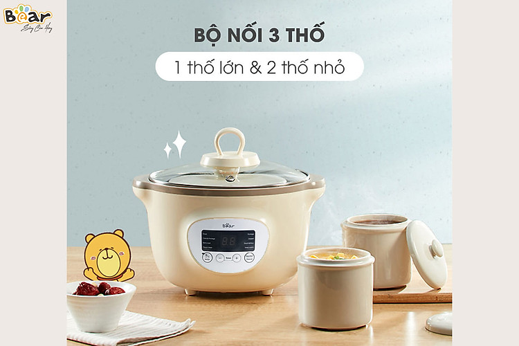 Nồi nấu chậm 1.6l Bear với thiết kế nhỏ gọn tích hợp lồng hấp xinh xắn và tiện lợi, đã trở thành một trong những mặt hàng “quốc dân” được tin dùng tại Việt Nam và thế giới. Bear DDZ-D16J3 xứng đáng là sản phẩm nhà bếp thế hệ mới bắt kịp xu hướng đồ gia dụng nhà bếp hiện đại, vừa đảm bảo các tính năng nấu ăn hấp hầm/nấu cháo cho bé, vừa đảm bảo tính thẩm mỹ cho căn bếp gia đình bạn.