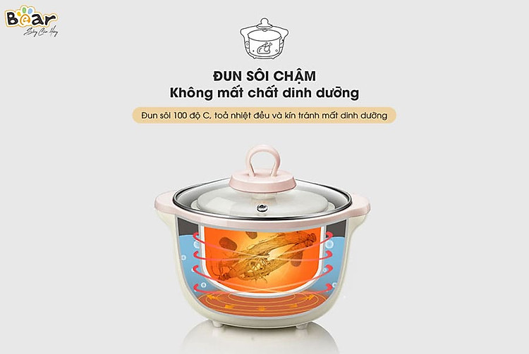 Bên cạnh đó sử dụng thố sứ giúp truyền và giữ nhiệt tốt, dù nấu sôi ở mức nhiệt 100 độ C vẫn không làm bay hơi hay mất dinh dưỡng trong nồi. Ngoài ra nguyên lý nấu cách thủy của nồi còn giúp tiết kiệm điện năng hiệu quả nhé.