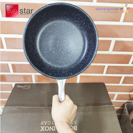Chất liệu chảo: Inox 304 cao cấp, 3 lớp đáy liền, lòng phủ lớp chống dính vân đá đặc biệt không chứa PFOA