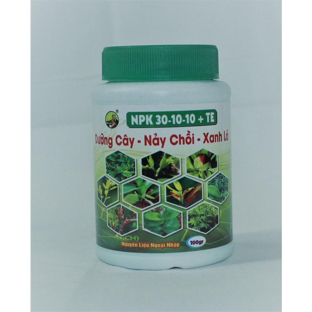 Giới thiệu Phân bón cây cảnh NPk 30-10-10 + TE Nảy chồi xanh lá dưỡng cây hũ 100g