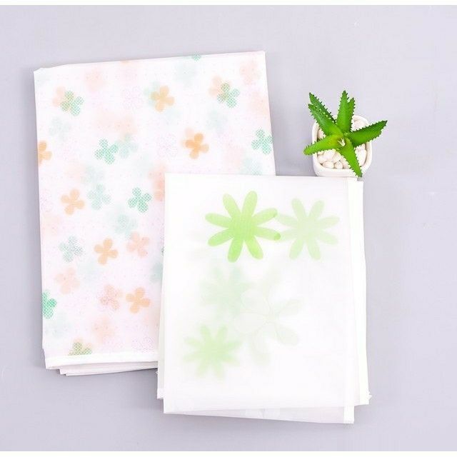 Khăn được làm bằng chất liệu vải ni lon PEVA không thấm nước, bền đẹp, dễ dàng vệ sinh và giặt giũ.