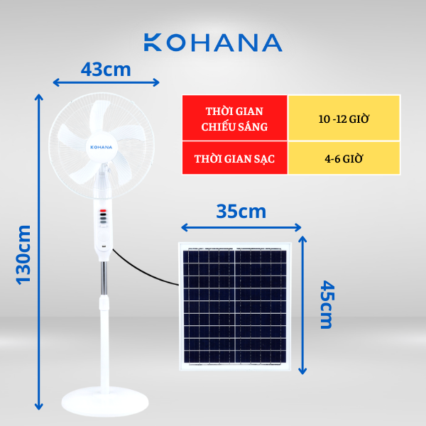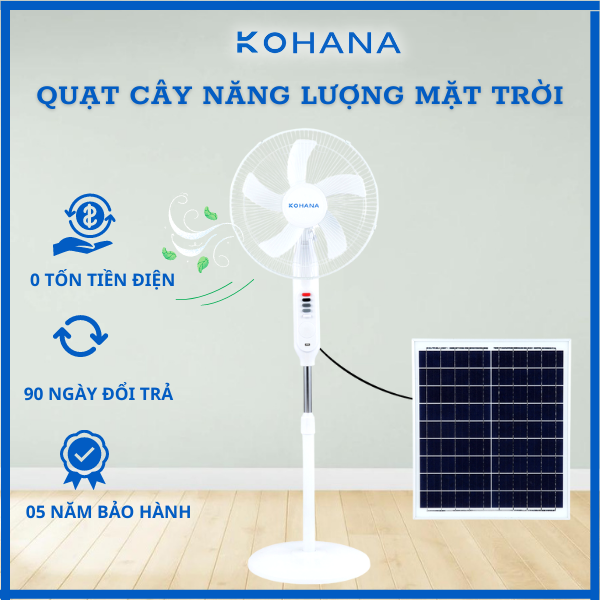 2. Độ bền từ 10 đến 12 năm: Quạt năng lượng mặt trời Kohana sở hữu bộ linh kiện tối tân nhất hiện nay, công nghệ sản xuất hiện đại, vì thế độ bền có thể lên tới 12 năm, lại không lo chập cháy, nổ do dây điện như quạt thông thường