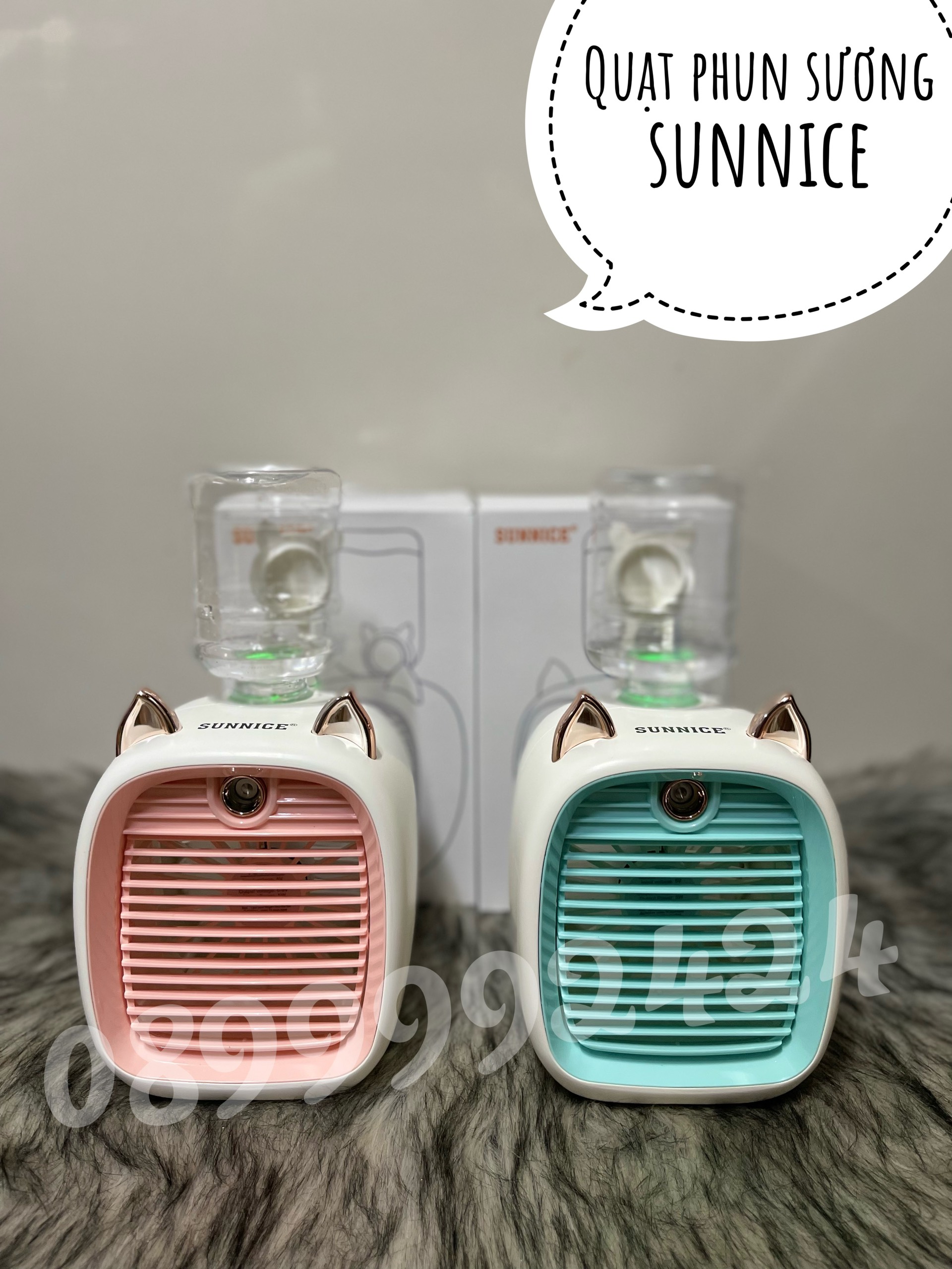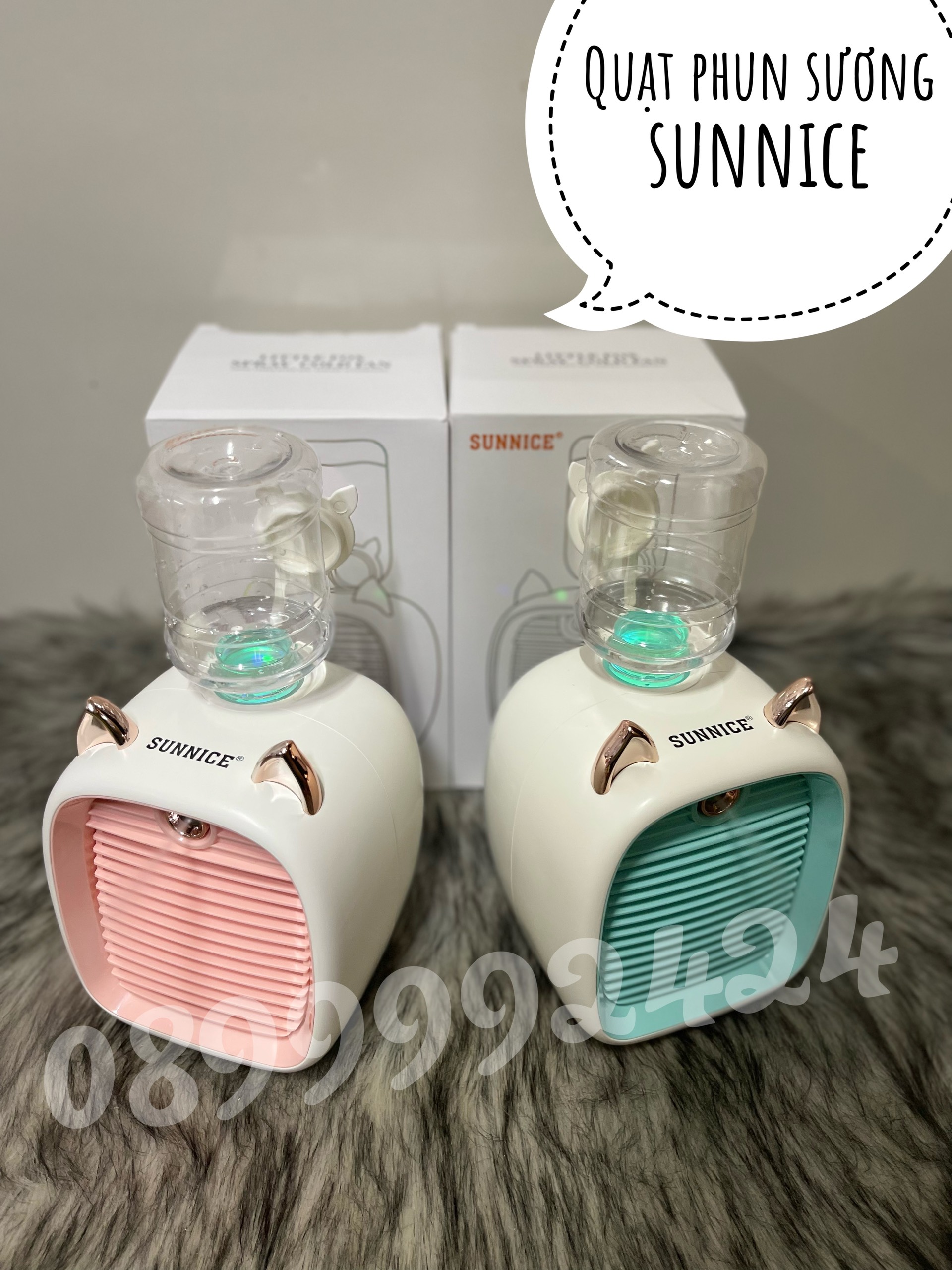| Model | QUẠT SẠC 3 CẤP ĐỘ GIÓ ĐỂ BÀN CÓ PHUN SƯƠNG SUNNICE HỒNG - XANH |