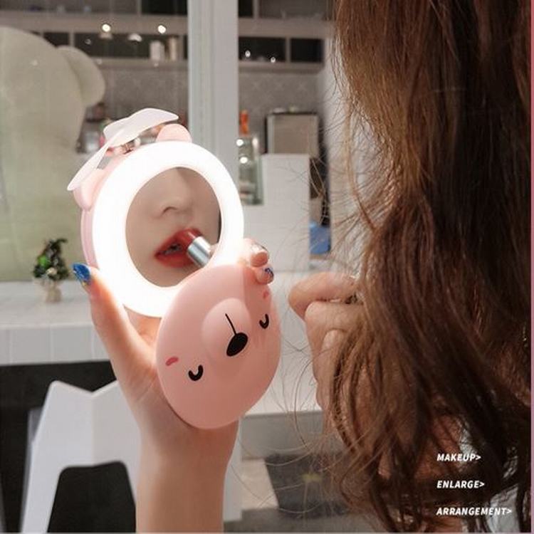 Chắc chắn bạn sẽ khó tìm được chiếc gương soi mặt cầm tay nào dễ thương như chiếc gương này. Mặt sau của gương được in hình thú cưng . Gương soi mini còn được tích hợp thêm đèn và quạt mini tiện dụng, có thể trang điểm bất chấp ánh sáng xung quanh hay thổi bay cái nóng thật dễ dàng. Bạn là fan cuồng của những chú heo xinh xinh hay các động vật kute này thì đừng bỏ qua chiếc gương cầm tay mini này nhé.