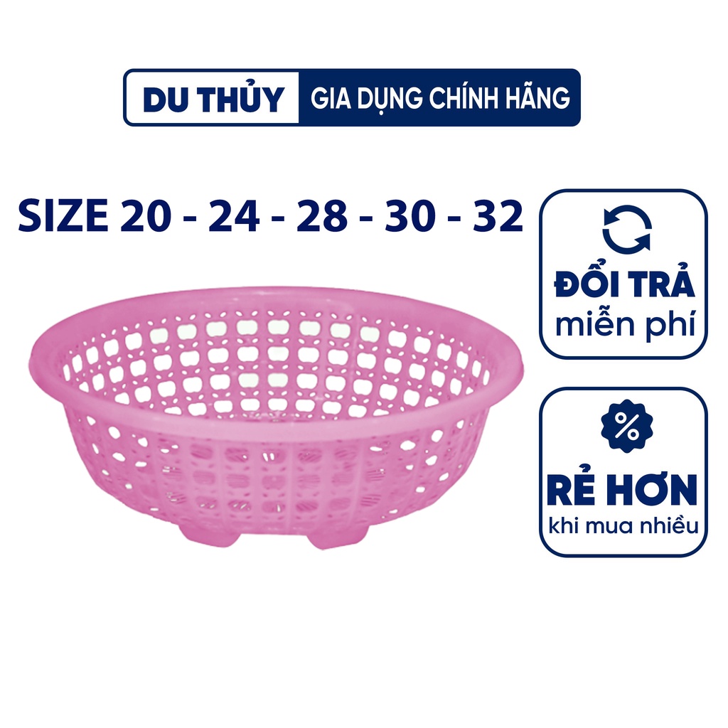 - Rổ nhựa tròn size 20 đặc biệt có chân giúp róc nước, vệ sinh thực phẩm trong rổ, ngay khi để sát xuống nền