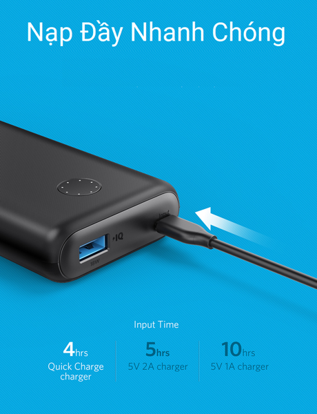Power IQ 2.0 hiện nay đa hướng, cho phép PowerCore II tận dụng tính năng nạp nhanh. Chỉ cần 4 giờ để sạc đầy với bộ sạc Quick Charge, và dành nhiều thời gian hơn nữa cho cuộc sống.