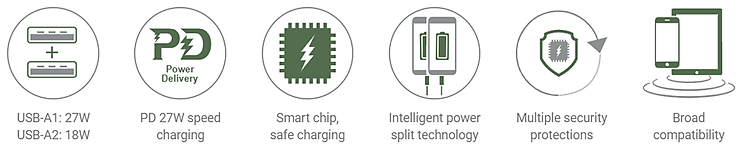 - Output: USB-A1: 27W (tương thích với QC3.0 / AFC / FCP / SCP).
