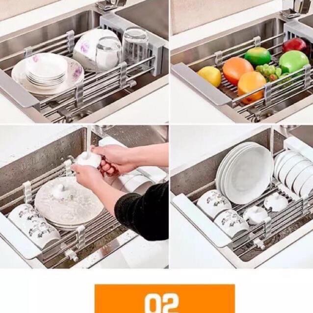 Giới thiệu (Sỉ Toàn Quốc) Rổ Gác Bồn Rửa Chén Inox Co Giãn Đa Năng- Giá Inox Để Chậu Rửa Bát