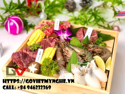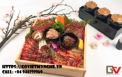 + Khay gỗ trang trí được dùng để trang trí Sushi - Sashimi, Setup các món BBQ, Lẩu Hải Sản...