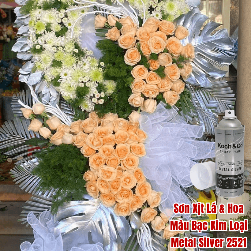 Sơn xịt màu bạc Silver giúp biến lá và hoa thành hiệu ứng màu bạc kim loại Silver Metal sang trọng chỉ trong 5 giây. Phù hợp cho florist, trang trí hoa cưới, decor sự kiện và nghệ thuật cắm hoa cần sang trọng và nhanh chóng