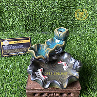 Thác khói trầm hương - Thác đốt trầm nụ, đốt nhang không tăm bằng gốm hình lá sen và cá chép, màu xanh