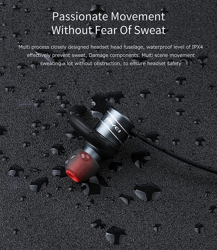 Tai nghe bluetooth 4.1 thể thao kháng nước hiệu Awei AK1 Với chuẩn IPX4, chiếc tai nghe này có thể chống thấm mồ hôi và đi mưa nhẹ.