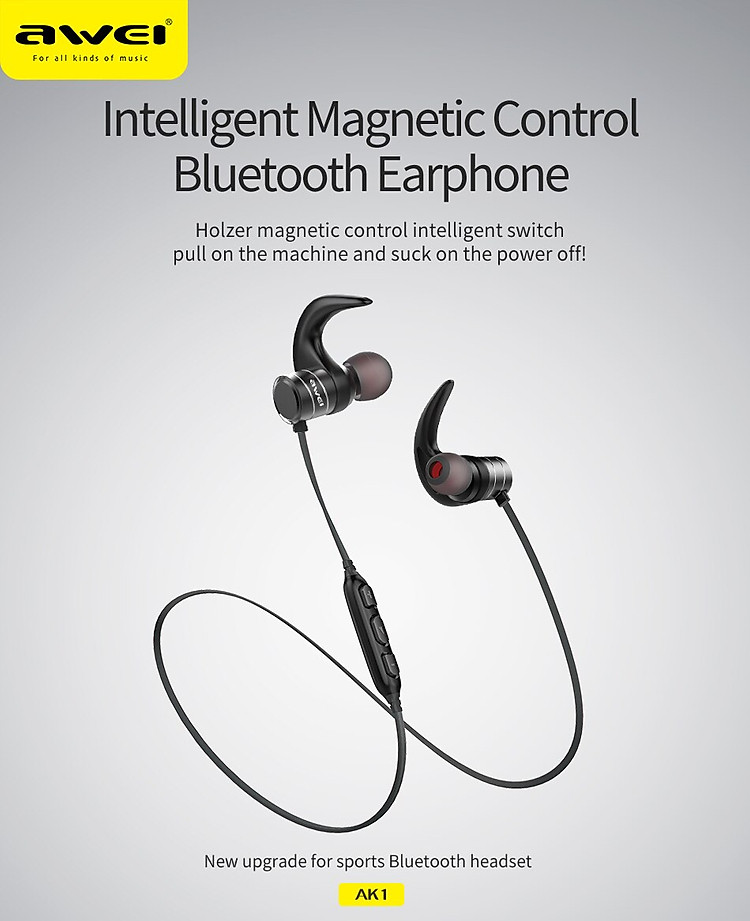 Tai nghe bluetooth 4.1 thể thao kháng nước hiệu Awei AK1 Với khối lượng chỉ 22g, chiếc tai nghe này sẽ không làm bạn cảm thấy khó chịu hay nặng nề vướn bận, gần như bạn sẽ không cảm thấy chúng đang ở trên tai bạn.