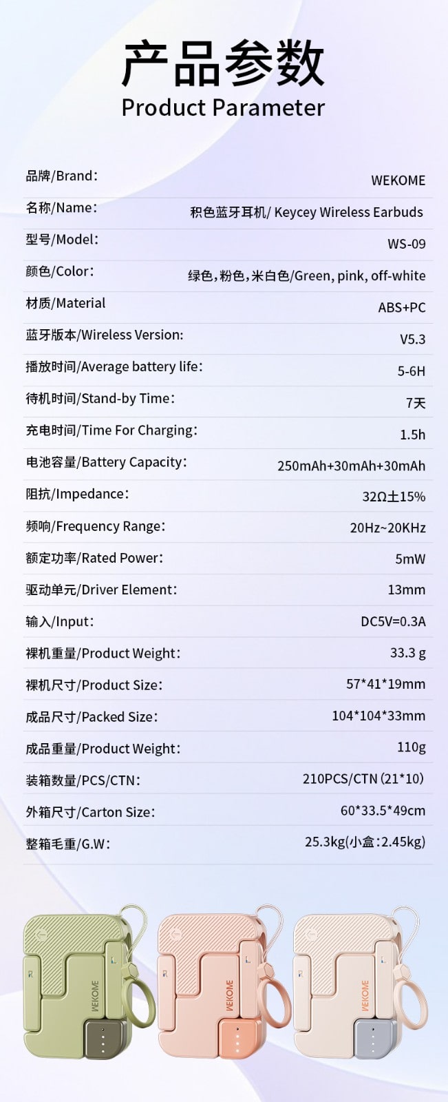| Tên | Tai Nghe Bluetooth WEKOME WS-09 Keycey Wreless Earbuds |