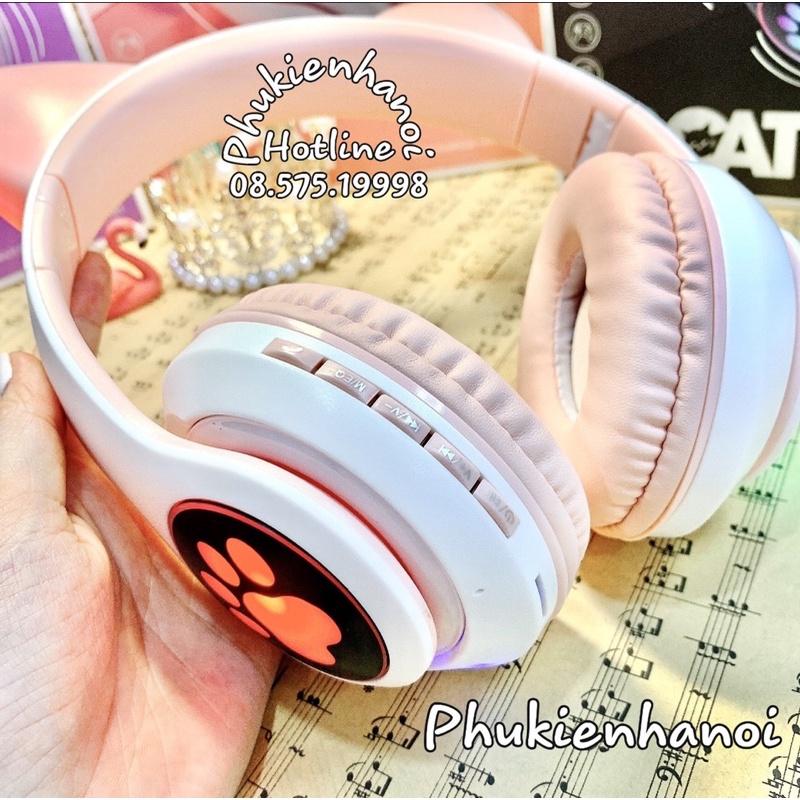 - Chụp tai mèo không dây 5.0 hỗ trợ mic đàm thoại có khả năng tương thích cao.