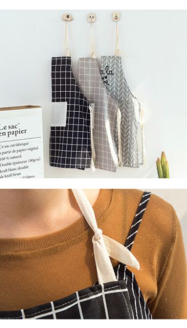 Giới thiệu Tạp dề vải kẻ ô caro nội trợ phong cách vintage có túi đựng đồ tiện dụng