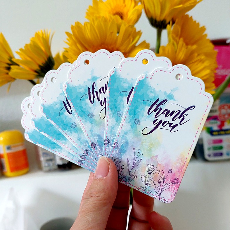 Thẻ treo cám ơn, mác giấy, Tag giấy thanks you (100 cái) giấy dày đẹp, có UV in nổi họa tiết