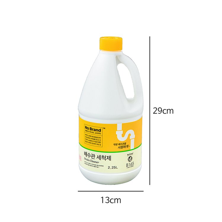 NƯỚC LÀM SẠCH ĐƯỜNG ỐNG NO BRAND노브랜드 배수관세척제 2.25LXuất xứ: Hàn QuốcThể tích thực: 2.25 LThành phần: chất hoạt động bề mặt 5%, anion,nonion,chất tẩy (natri hypochlorite),dung môi (natri hydroxit), chấ...