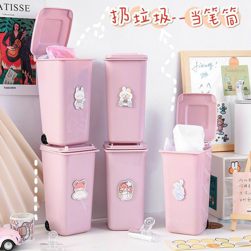 Nhà cửa & Đời sống > Dụng cụ chăm sóc nhà cửa > Thùng rác || Thùng rác mini ,hộp đựng bút có bánh xe để bàn đáng yêu sáng tạo