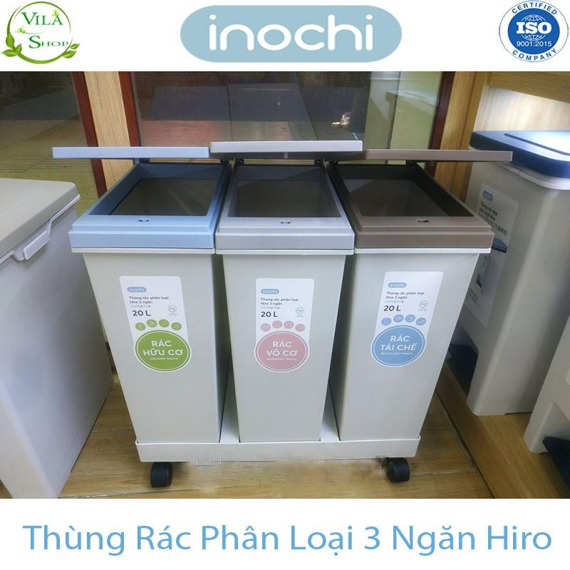 * Thùng Rác Phân Loại 3 Ngăn Hiro Inochi Làm Thùng Rác Công Ty, Khách Sạn, Nhà Hàng Đựng Rác Gia Đình