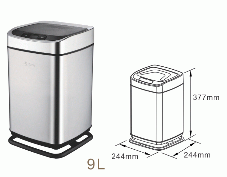 Thùng rác thông minh cảm biến tự động Xinda LJT2288-9L làm bằng thép không gỉ được thiết kế và chế tạo trên giây chuyền công nghệ cao bởi XINDA Group.