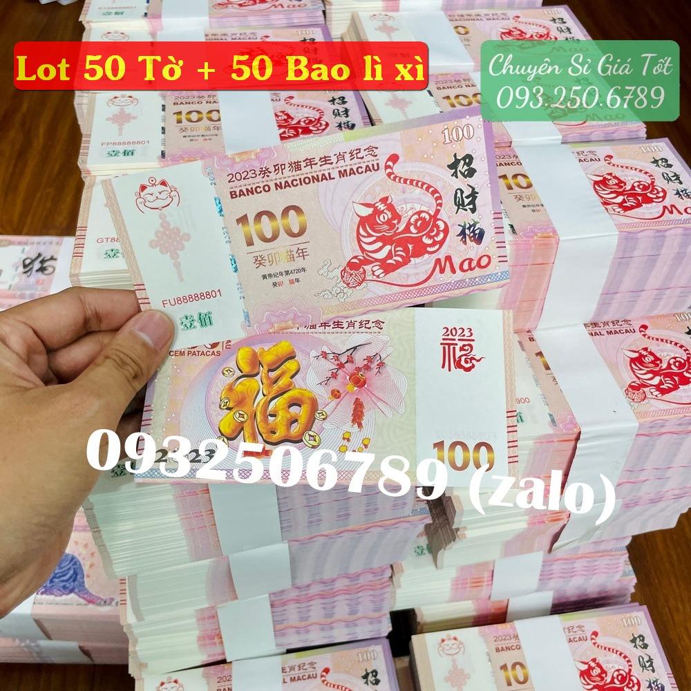 Tờ Macao 100 Hình Con Mèo Lì Xì Tết Quý Mão 2023 may mắn , có bảo an phát quang khi soi dưới đèn tia UV