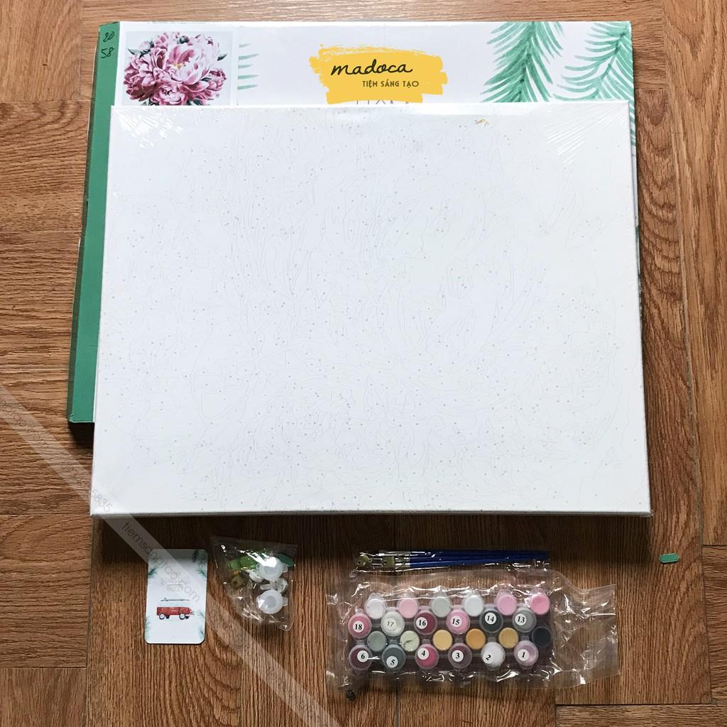 - Bộ màu vẽ có đánh số: Các lọ màu vẽ được đánh số tương ứng với số được đánh trên tranh, có chất lượng cao cấp và màu sắc rực rỡ, độ bền màu cao, an toàn cho sức khỏe người dùng.
