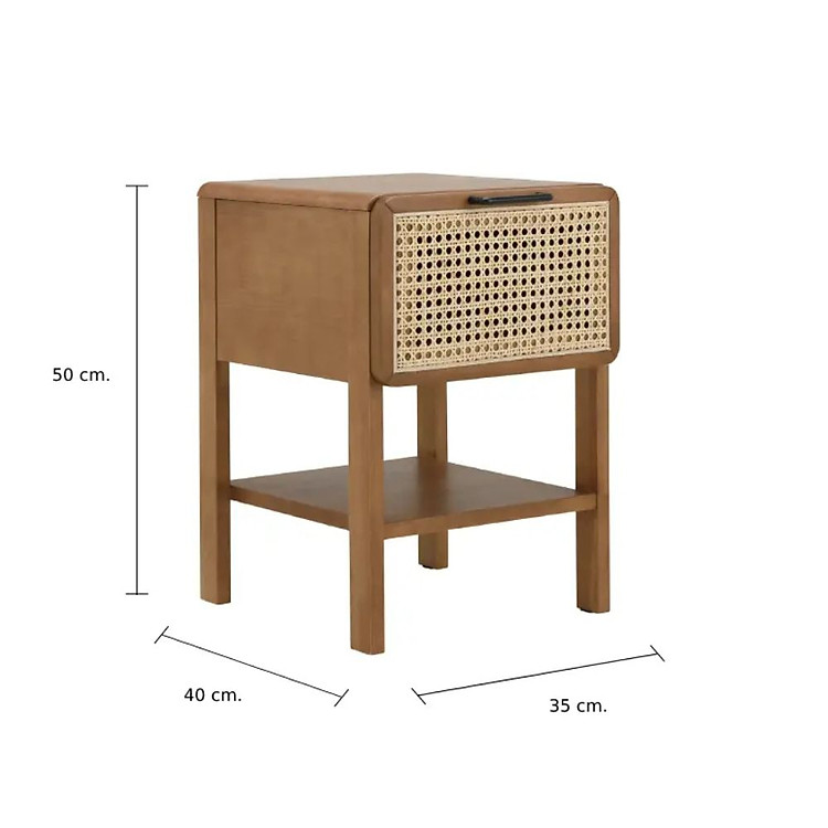 - Chiếc bàn đầu giường xinh đẹp này đứng hoàn hảo bên cạnh bất kỳ chiếc giường nào. Được làm từ gỗ cao su nguyên khối cho độ bền cao. Lớp hoàn thiện bằng gỗ tự nhiên mang lại cảm giác tự nhiên cho bất kỳ căn phòng nào.