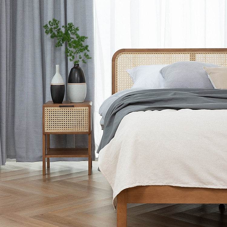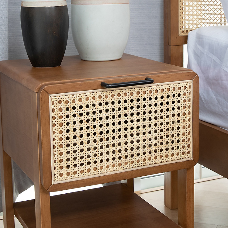 Tủ Đầu Giường TAKAYAMA Gỗ Cao Su Cao Cấp, Họa Tiết Mây Đan, Màu Gỗ Tếch, Chống Ẩm | Index Living Mall | Nội Thất Nhập Khẩu Thái Lan - Phân Phối Độc Quyền Tại Việt Nam