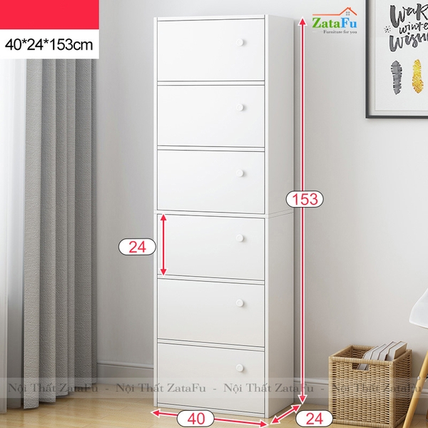 | Kích thước (d x r x c) | - Chiều sâu 24cm - Chiều rộng (dài) 40cm. - Chiều cao: Chiều cao mỗi ngăn tủ là 24cm |