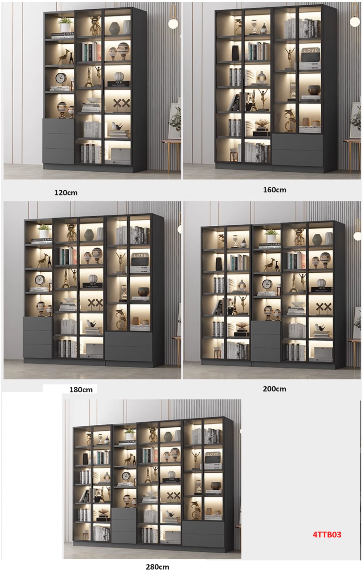 Khi kết hợp với đèn Led những vật phẩm đang được trưng bày trong tủ sẽ được tôn lên dưới ánh sáng huyền ảo giúp căn phòng trở nên rất sang trọng. Thiết kế các ngăn tủ trang trí cánh kính được phân chia khoa học, thẩm mỹ tạo sự gọn gàng, ngăn nắp cho không gian. Lớp kính trong suốt giúp dễ dàng trong việc lựa chọn món đồ mà mình muốn.