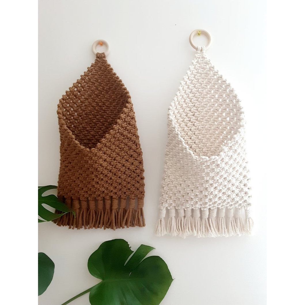 TÚI MACRAME TREO TƯỜNG được thiết kế chắc chắn, tiện dụng giúp bạn đựng và bảo quản các vật dụng nhỏ một cách khoa học, tiết kiệm không gian sống tối đa. Túi thường được treo ở trên tường, sau cánh cửa, trong nhà vệ sinh, phòng ngủ, phòng khách với màu sắc tươi tắn, nhã nhặn và họa tiết đơn giản, thanh lịch chiếc túi sẽ góp phần tô điểm cho căn phòng nhà bạn thêm sinh động, bắt mắt.