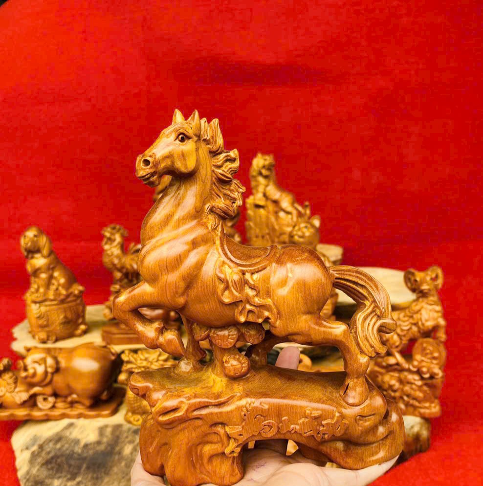 _ Bộ tượng 12 còn giáp phong thủy được làm bằng chất liệu gỗ bách xanh liền khối tự nhiên 100%