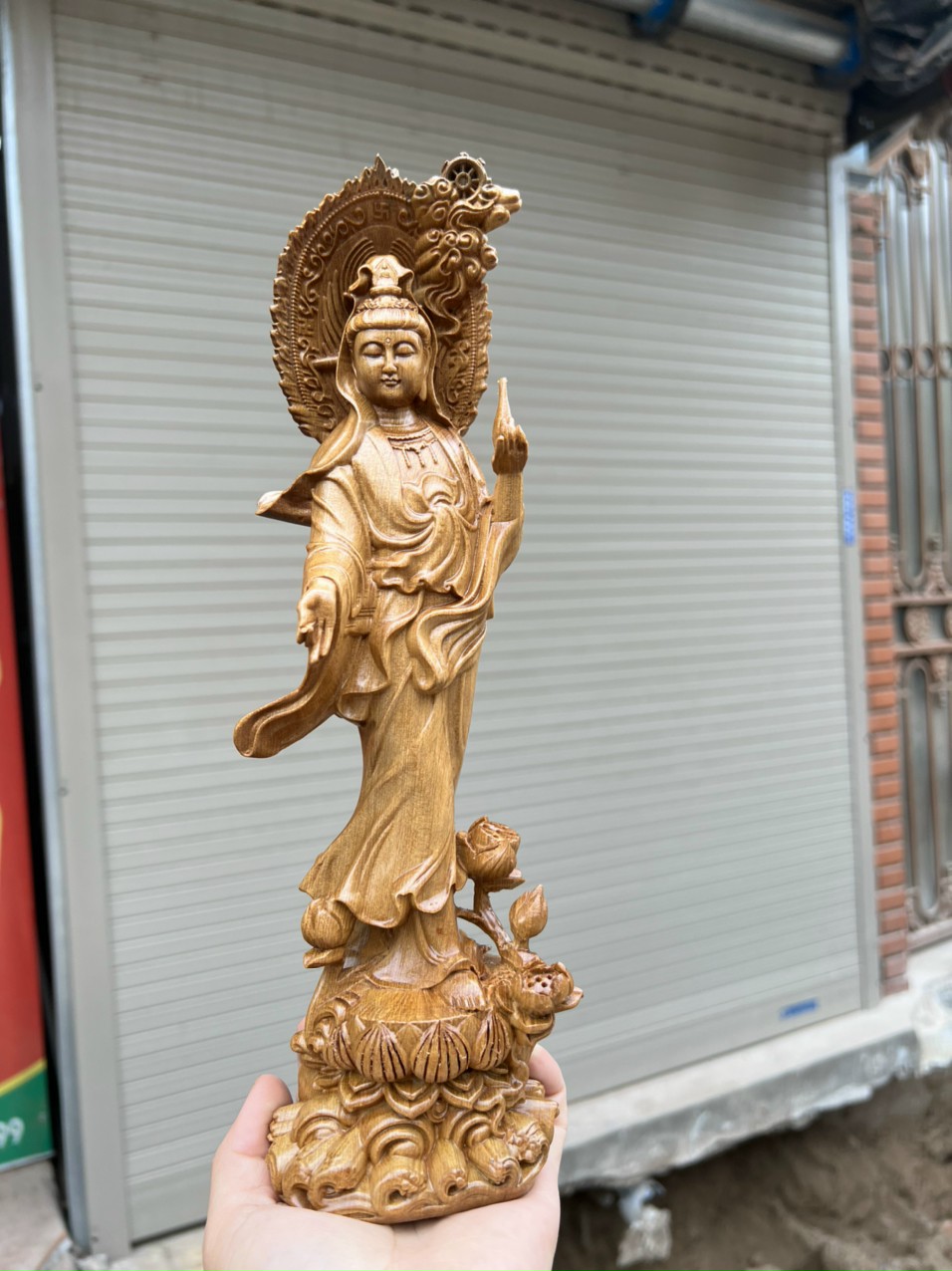 _ Tượng phật bà quan âm bồ tát được trạm khắc vô cùng tỉ mỉ tinh sảo kỳ công .Đi hầu hết tất cả mọi chi tiết góc ngách của tượng đều được ngọt tỉa chỉnh sửa hoàn toàn bằng tay thủ công .Đồng thời tượng được kiểm định rất kỹ lưỡng như là cho vào thẩm sấy cho gỗ khô kiệt .Mục đích trống dập nứt vênh mo mối mọt ,Tượng phật bà quan am bồ tát được làm và hoàn thiện do bàn tay khối óc tài hoa từ những người thợ giàu kinh nghiệm ,Cũng như tay nghề cao trong làng nghề truyền thống .Chính vì thế tượng phật bà quan âm bồ tát đã đáp ứng đầy đủ những tiêu trí ( Đẹp bền rẻ ) Thẩm mỹ nghệ thuật với chất lượng tuyệt vời