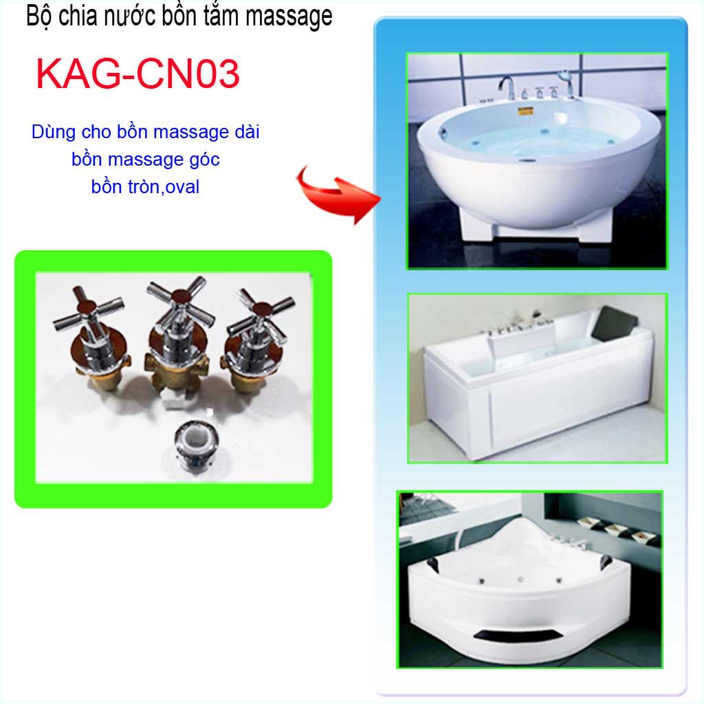 Nhà cửa & Đời sống > Đồ dùng phòng tắm > Bồn tắm || Van chia nước bồn tắm massage, bộ chia nước bồn mát xa KAG-CN03
