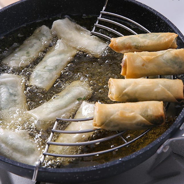👉Vỉ gác chảo rán rất cần thiết khi bạn làm các món rán : nem, bánh ngô, bánh khoai, báh gối......